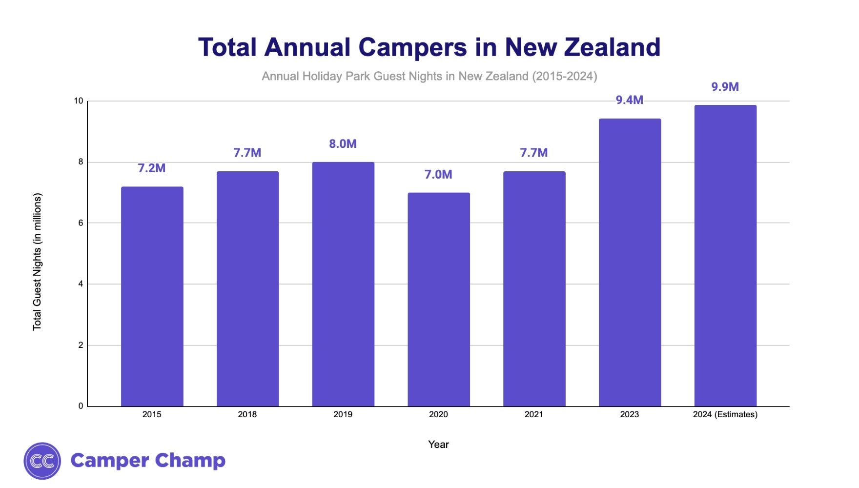 - More than a million domestic and international visitors camp annually in New Zealand. According to a 2006 survey, over 37% of New Zealanders were regular campers.