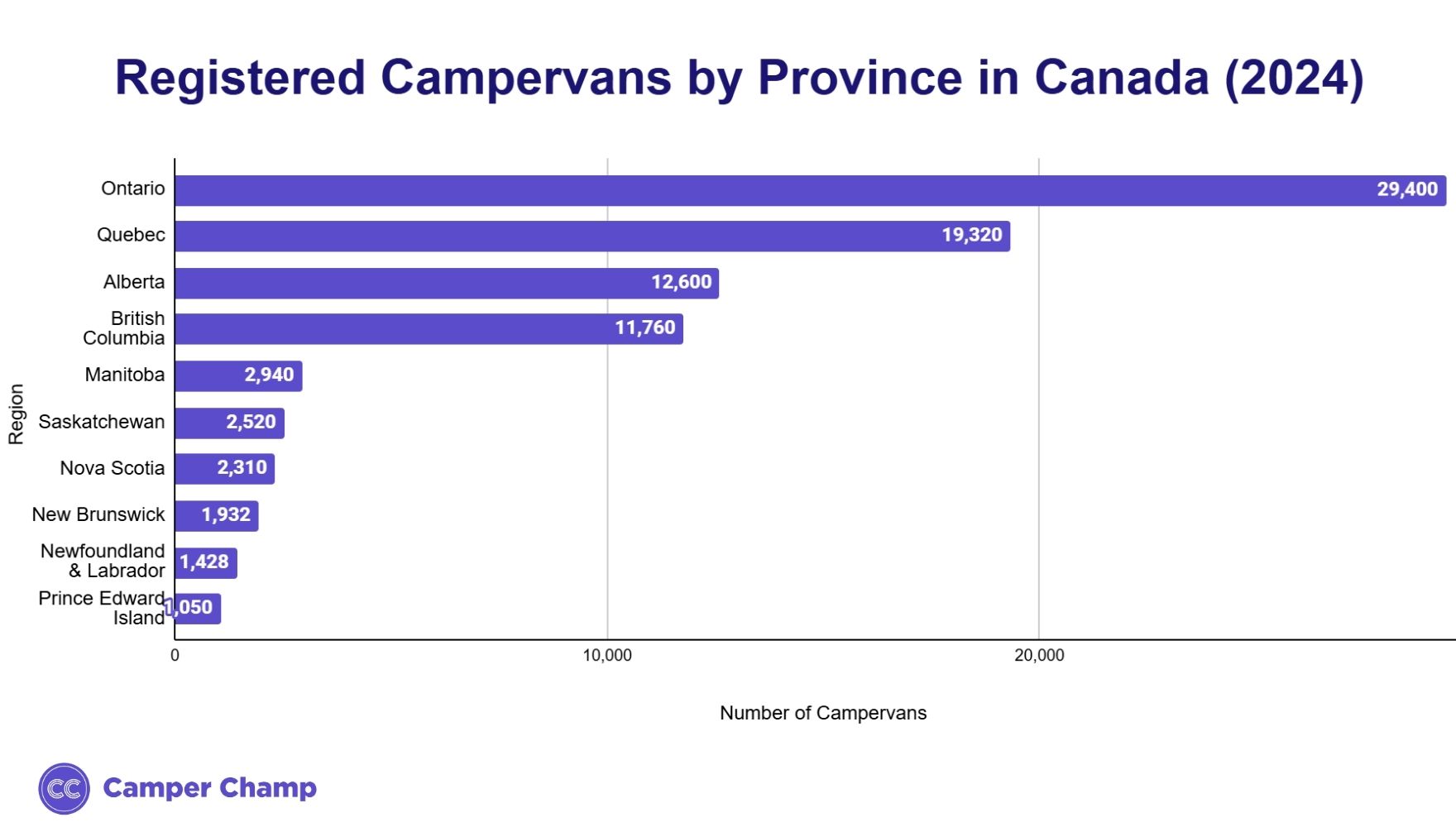 - Ontario has 35% (29,400) of all Canadian campervans.