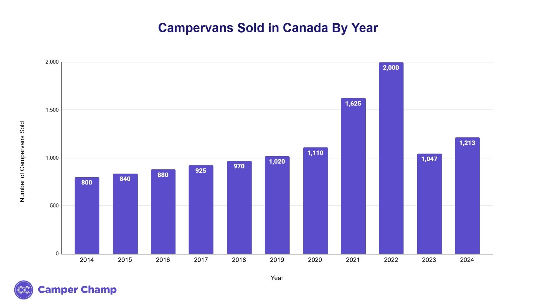 1,213 campervans were sold in 2024, 4% of all RVs sold in Canada.
