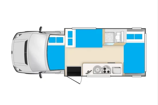 Being a 6-berth vehicle, the Cheapa 6-Berth can sleep up to 6 people. The sleeping layout includes three double beds.