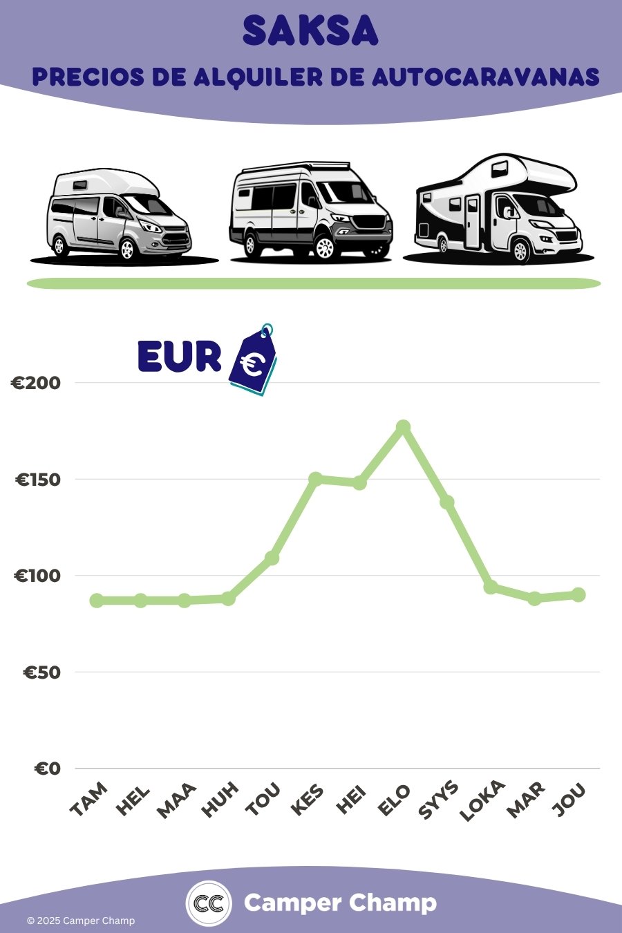Asuntoauton vuokrauksen keskimääräinen hinta Saksassa alkaa noin 80 eurosta päivässä ja voi nousta jopa 280 euroon päivässä tai enempään riippuen ajoneuvon tyypistä, koosta, sesongista ja muista tekijöistä.