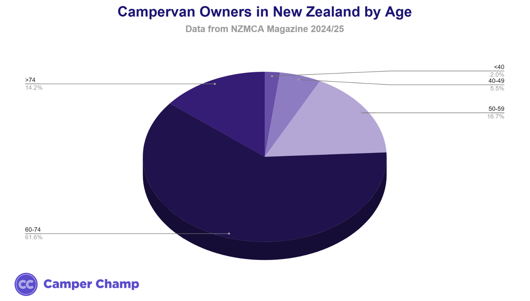 Campervan owners in New Zealand are predominantly older adults and retirees. 75.9% of owners are over the age of 60.