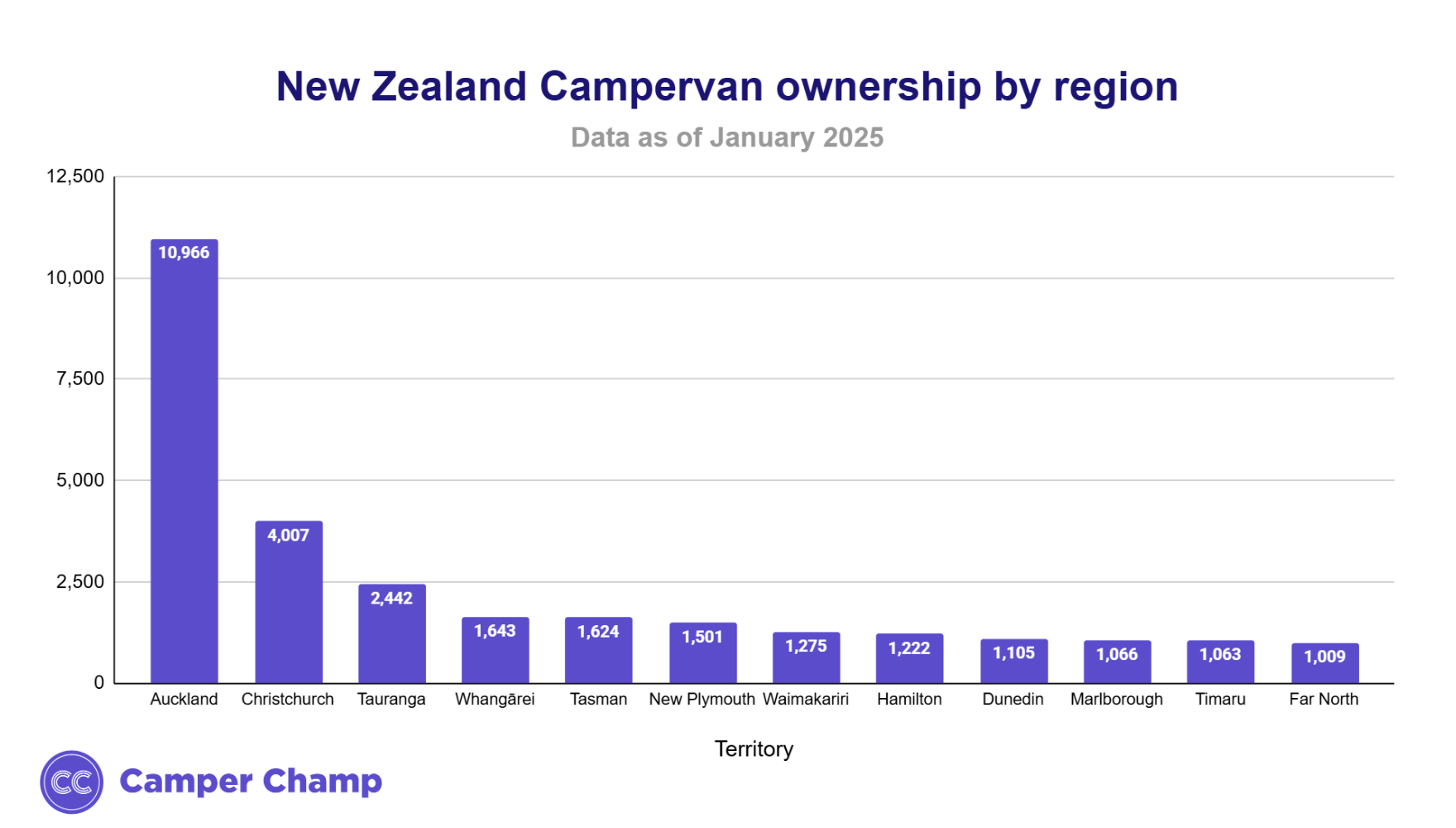 - Auckland, Christchurch and Tauranga have the highest campervan ownership in New Zealand.