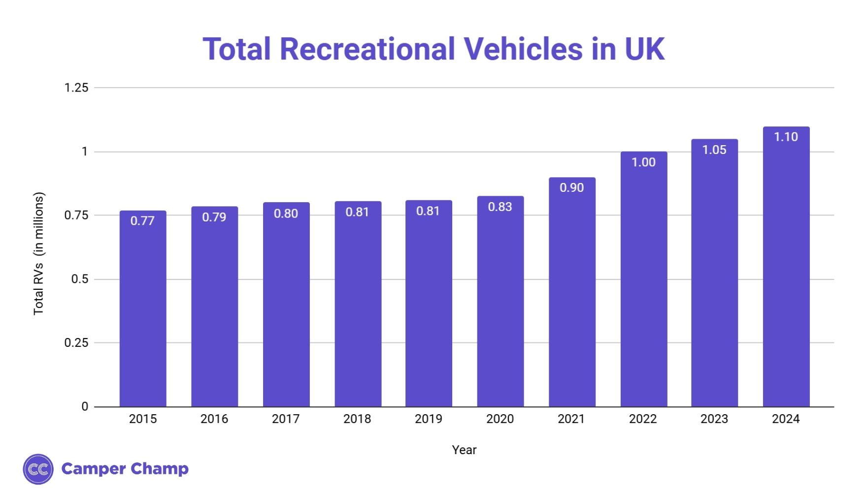 As of 2024, there were over 1.1 million leisure vehicles in the UK, including 555,000 touring caravans and 250,000 motorhomes.